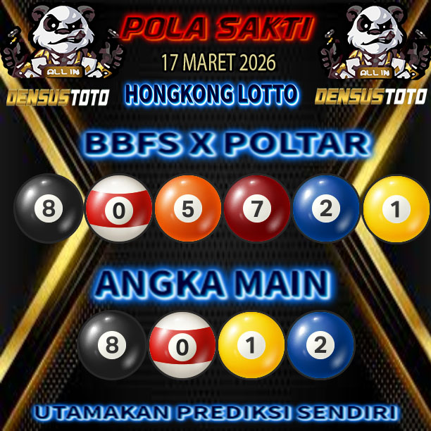 Prediksi DENSUSTOTO menyediakan Syair Togel Hongkong resmi yang dapat anda saksikan dalam situs judi togel online ini. Setiap pemain judi togel online yang tidak memandang dan mengenal syair togel hongkong pastilah kurang mujur buat mendapati angka keluaran togel terjitu. Lantaran itu sekarang situs judi togel online DENSUS TOTO sekarang akan memberikan anda bocoran bagaimana caranya mendapati nomor keluaran prediksi hongkong dari syair togel hk terjitu. Sekarang anda cuma perlu dan mengenal code syair hongkong ini merupakan prediksi hongkong yang dituang terdapat sifat code syair. Maka serius tidak bertanya-tanya jikalau sejumlah penggemar togel begitu menyintai prediksi syair togel ini. Buat prediksi syair hongkong dapat dipakai buat bahan ketidaksamaan mencari angka jitu yang bisa keluar pada hari ini. Karenanya berhati-hatilah selalu pada setiap terdapat dipicu di situ dapat anda angka bermain 2D, 3D dan 4D.