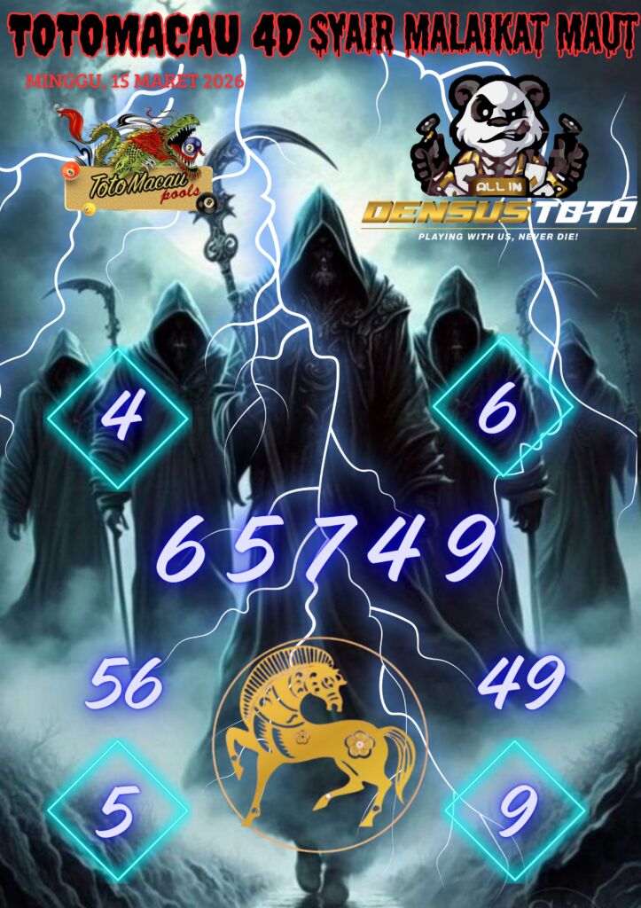 Prediksi DENSUSTOTO menyediakan Syair Togel Toto Macau resmi yang dapat anda saksikan dalam situs judi togel online ini. Setiap pemain judi togel online yang tidak memandang dan mengenal syair togel Toto Macau pastilah kurang mujur buat mendapati angka keluaran togel terjitu. Lantaran itu sekarang situs judi togel online DENSUS TOTO sekarang akan memberikan anda bocoran bagaimana caranya mendapati nomor keluaran prediksi Toto Macau dari syair togel sgp terjitu. Sekarang anda cuma perlu dan mengenal code syair Toto Macau ini merupakan prediksi Toto Macau yang dituang terdapat sifat code syair. Maka serius tidak bertanya-tanya jikalau sejumlah penggemar togel begitu menyintai prediksi syair togel ini. Buat prediksi syair Toto Macau dapat dipakai buat bahan ketidaksamaan mencari angka jitu yang bisa keluar pada hari ini. Karenanya berhati-hatilah selalu pada setiap terdapat dipicu di situ dapat anda angka bermain 2D, 3D dan 4D.